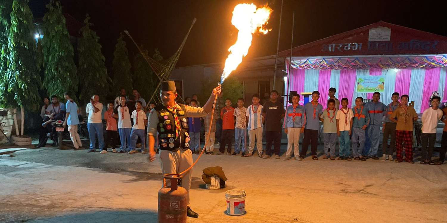 रामधुनी । रामधुनी नगरपालिका–५ मा सञ्चालित आरम्भ विद्या मन्दिर स्कुल परिसरमा दुईदिने स्काउट क्याम्प सम्पन्न भएको छ । ‘जम्प इन्टु एडभेञ्चर’ नाम दिइएको उक्त क्याम्प शुक्रबार सुरु भएर शनिबारसम्म चलेको छ ।