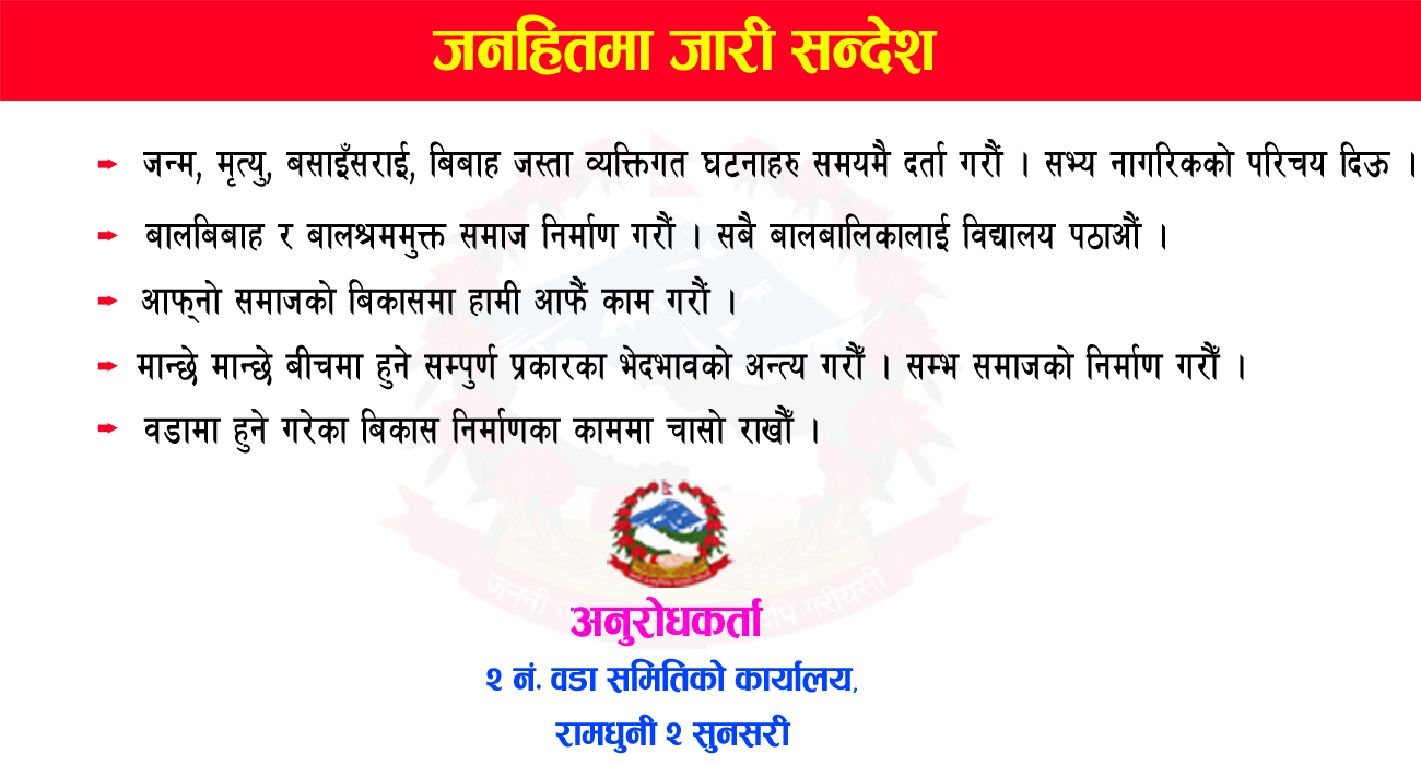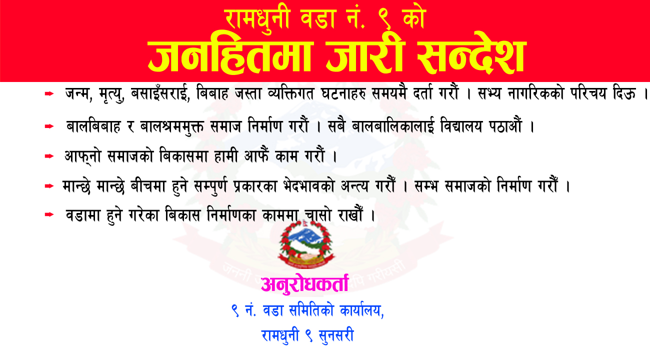 रामधुनी । रामधुनी नगरपालिका–१ झुम्कामा सञ्चालनमा रहेको साई हस्पिटल प्रा. लि. ले यहि कात्तिक १ गते शनिवार विशेष स्वास्थ्य शिविर सञ्चालन गर्ने...